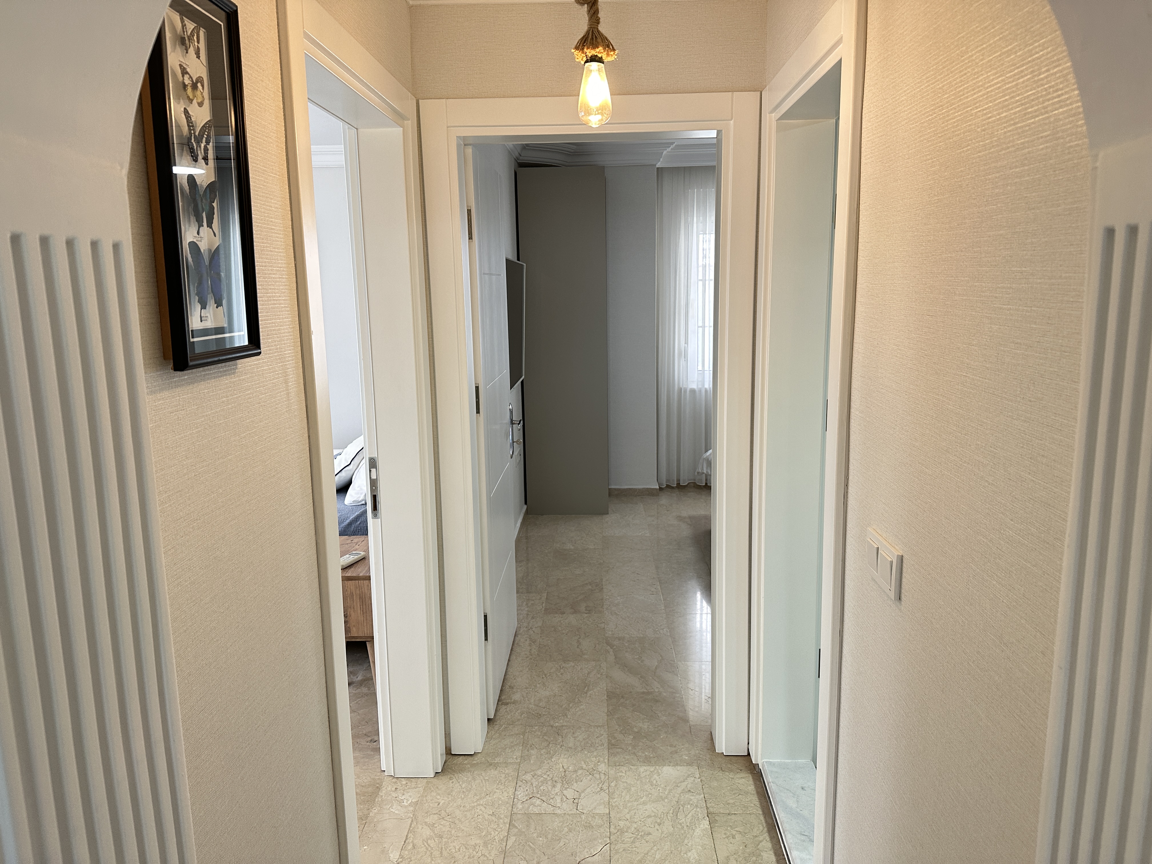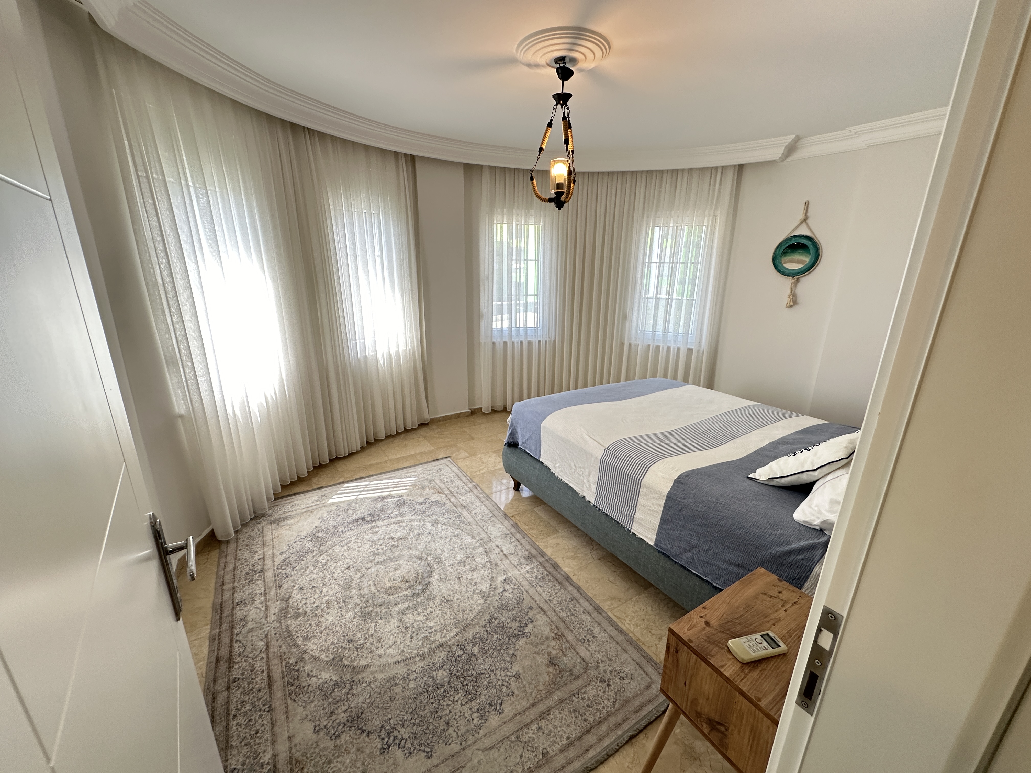 Расположена в р-не Кестель г. Аланья всего в 300 метрах от моря. В доме установлена новая техника и мебель, установлена новая кухня. Есть автоматические ворота и открытая парковка на 2 автомобиля. Так же есть свой гараж.