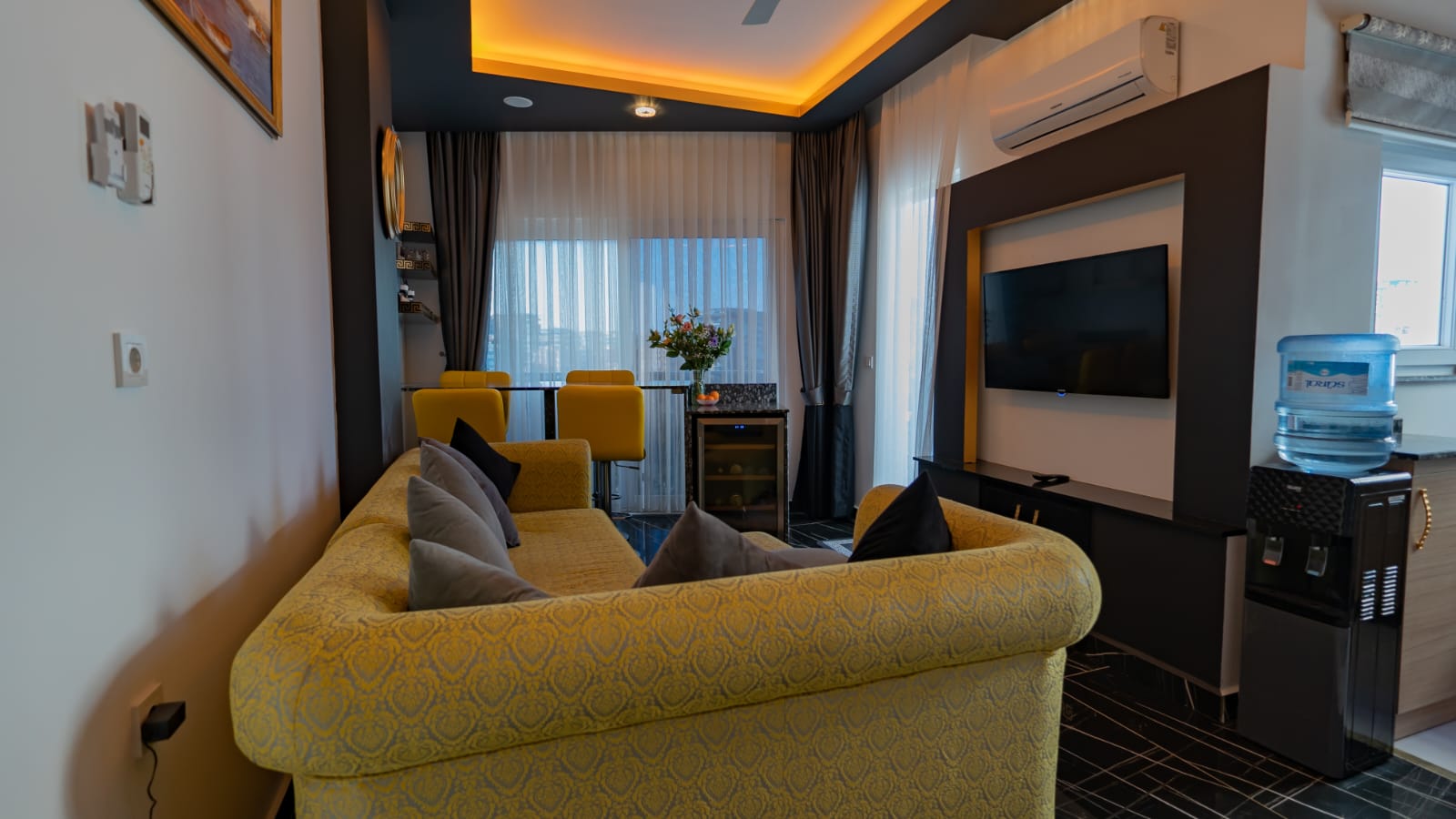 Квартира от нашего клиента в любимом районе Махмутлар г. Аланья! Планировка 2+1 с площадью 90 м2 на 3м этаже 5ти этажного дома с шикарным видом на древний г. Наула. В каждой комнате есть кондиционер и телевизор. Есть холодильник для вина и барная стойка. И по всей квартире установлена HI-FI система.