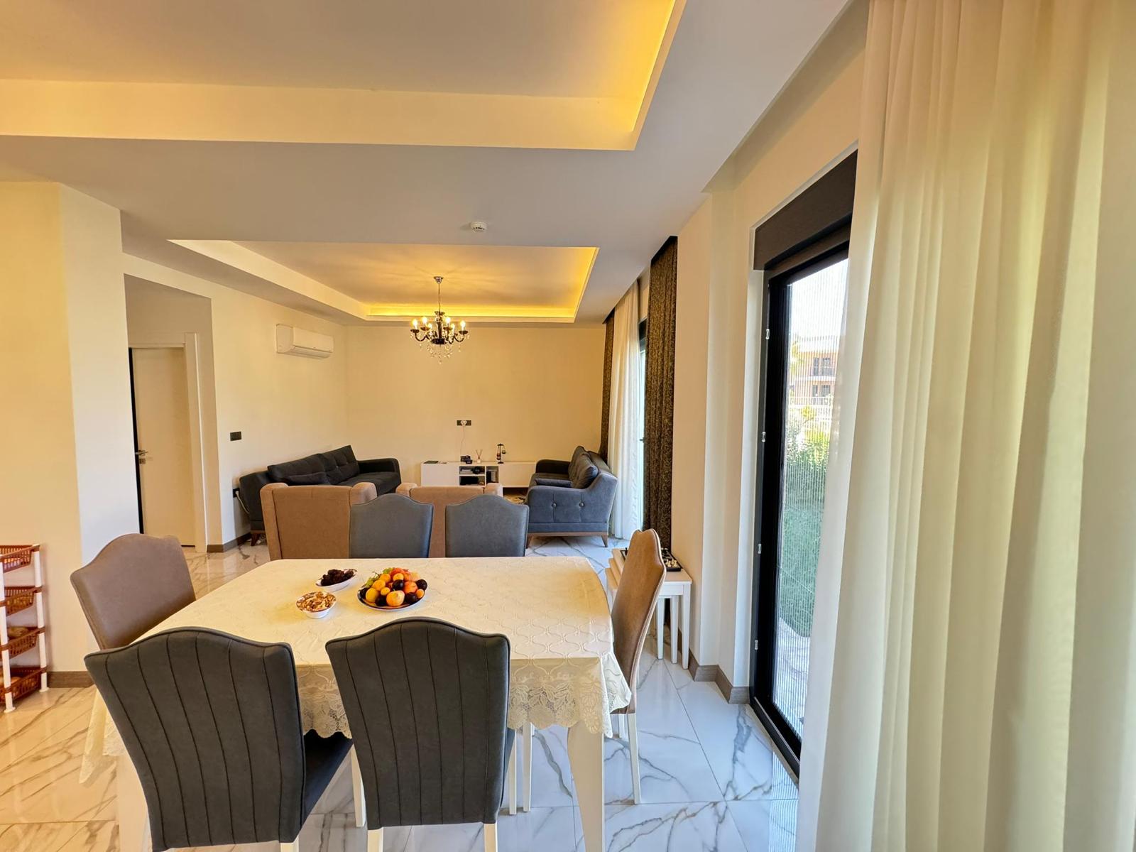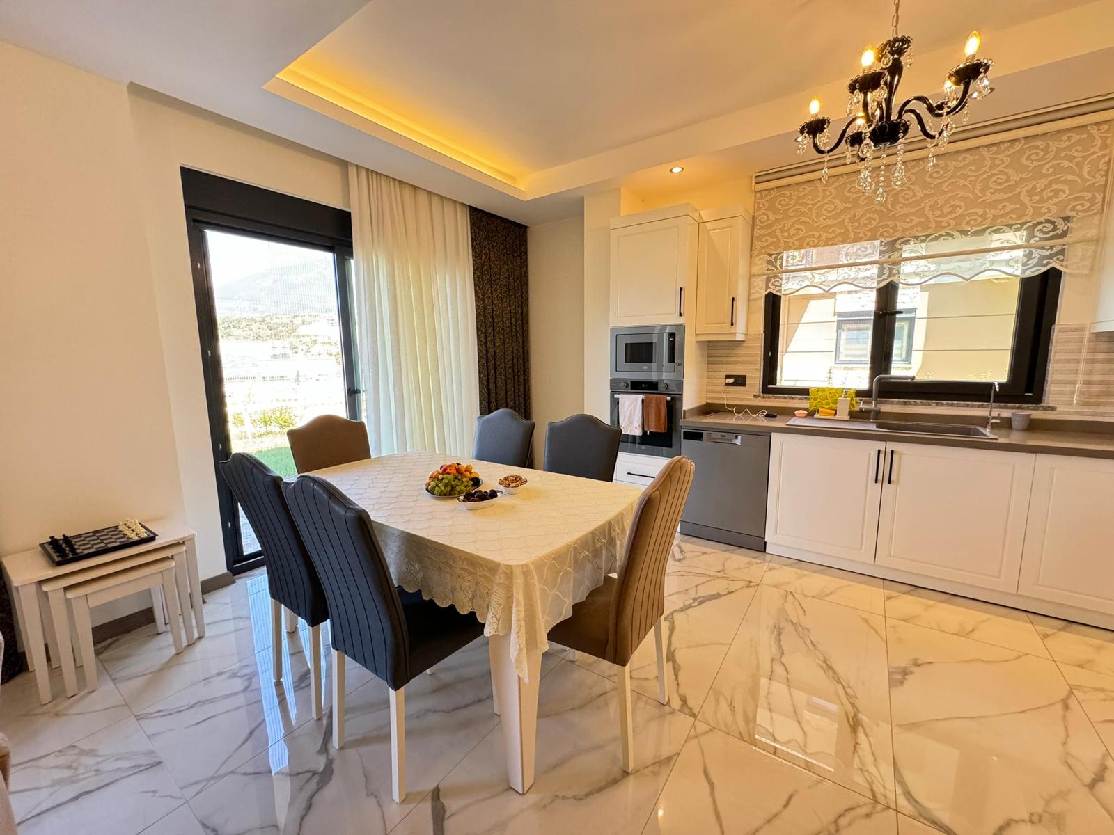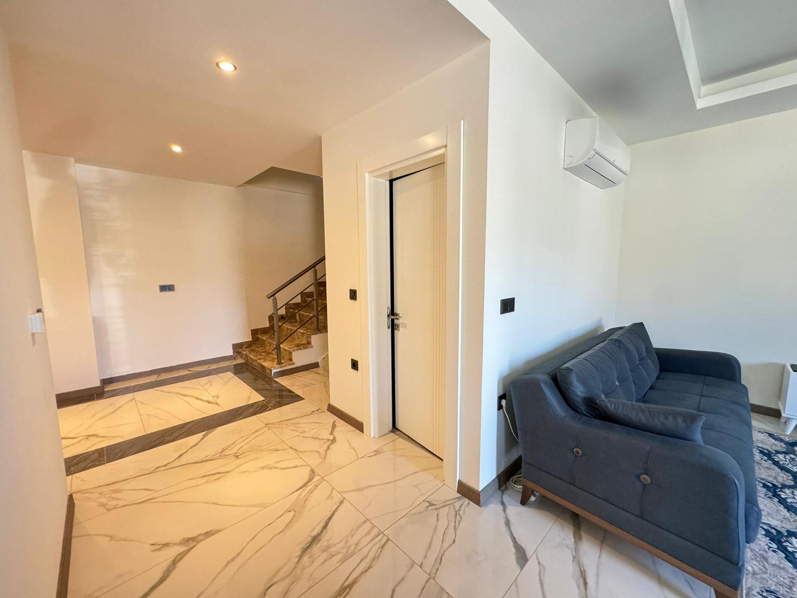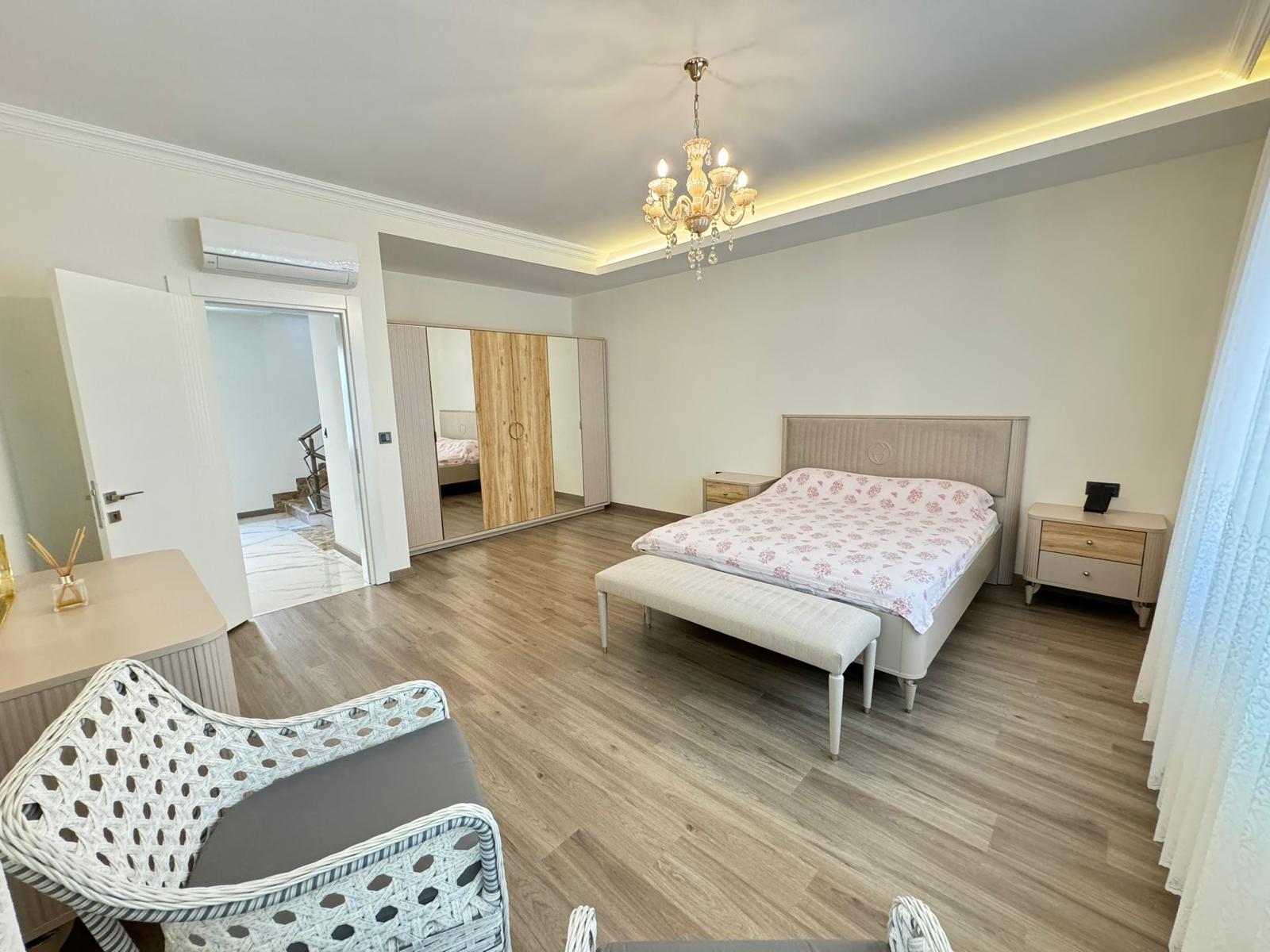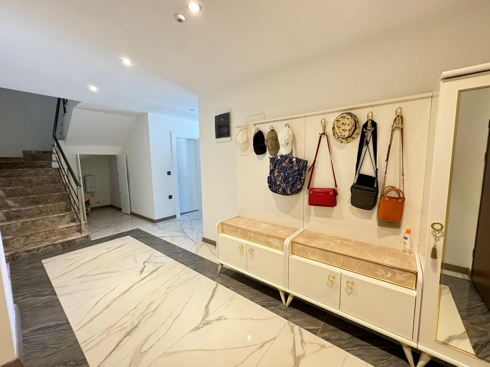 5+1 полностью меблированная 3-этажная вилла-триплекс. Теплый пол имеется на каждом этаже. На вилле имеется собственная система отопления.
